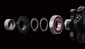 わずか9°の噛み合わせで瞬時の加速を可能にする新開発の超軽量「インスタントドライブ360 フリーホイール。非接触式の大型ラバーシールで摩擦を抑え、多彩に揃ったエンドキャップが幅広い汎用性を実現した。