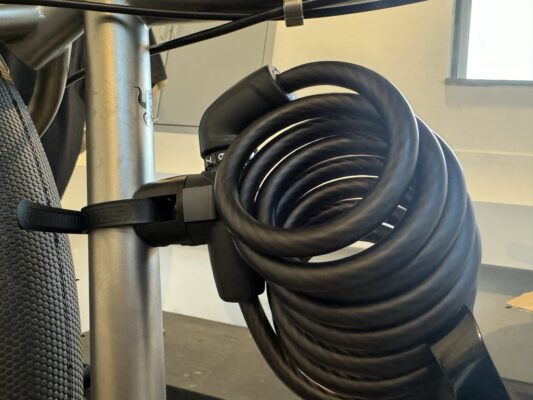 ABUSのケーブルロックは十分な太さがあるので、ワイヤーカッターでは刃が入りづらく、セキュリティとしての役目をしっかり果たします。