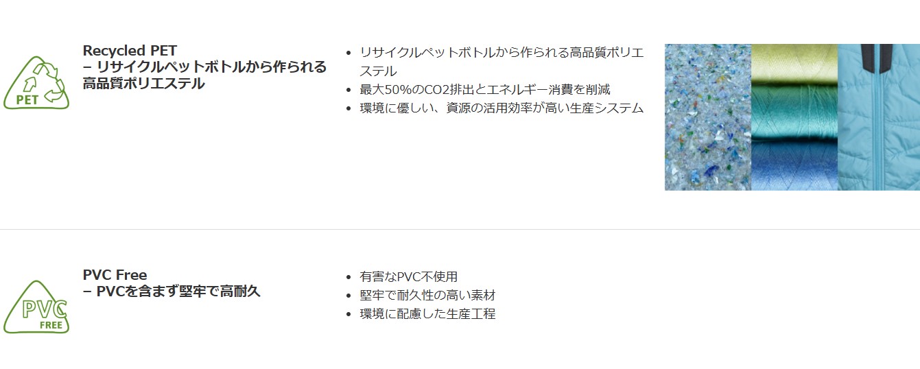 - 気候変動に左右されない、環境に優しいブルーサイン認証素材を使用