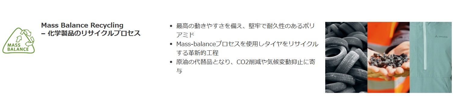 世界で最も厳しい基準のひとつであるbluesignシステム認証素材を厳選し、環境に配慮した機能的な製品であることを示すVAUDEのオリジナルラベルラベルTechnologies and Materials