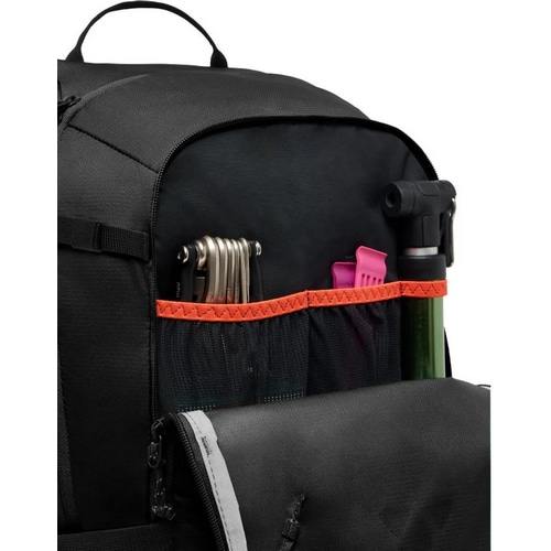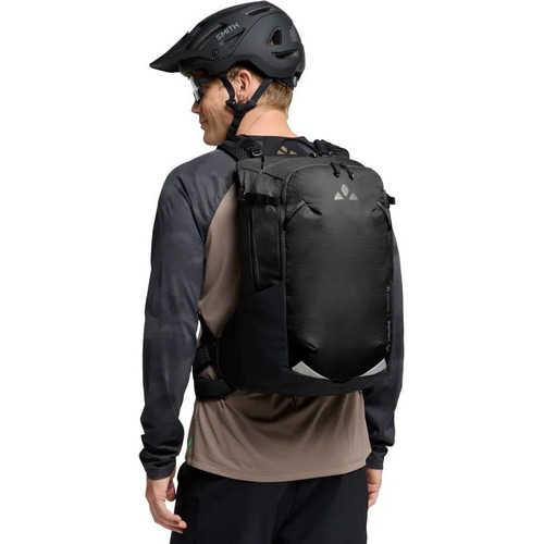 メッシュの外ポケットは必需品に素早くアクセスでき、ヘルメットホルダー、ライトアタッチメント、反射エレメント、一体型レインカバーなどの便利な機能で、あらゆる事態に備えることができる。