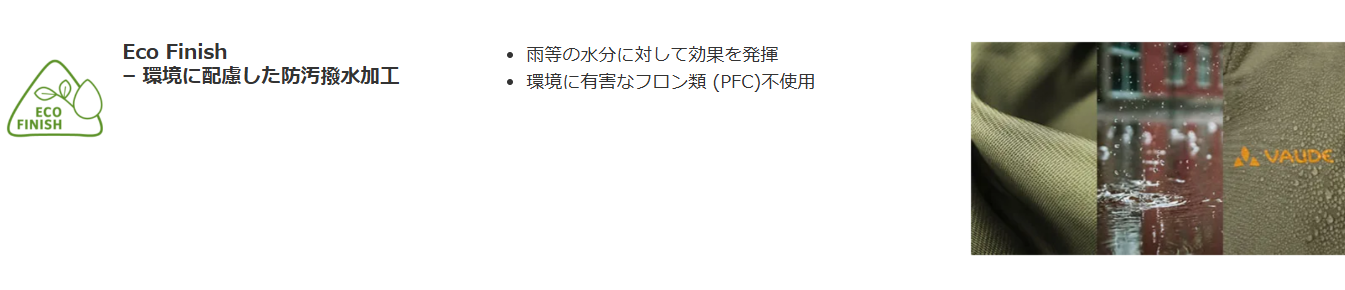 さらに、PFCフリーの撥水加工を施したエコフィニッシュ。