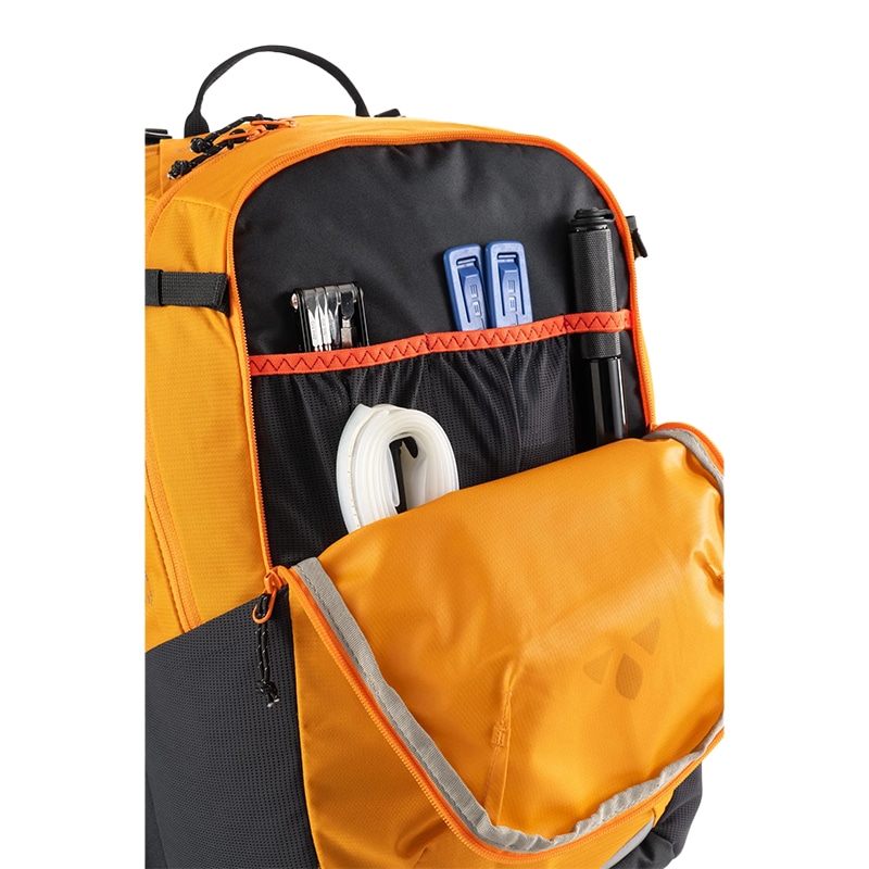 貴重品のための安全なジッパーポケット、便利なキーホルダーの他、ポンプ、ツール、スペアチューブなど整理しやすいオーガナイザーをフロントポケットに備えた、ハイドレーション用のスペースなど適切に設計されたレイアウトが特徴です。