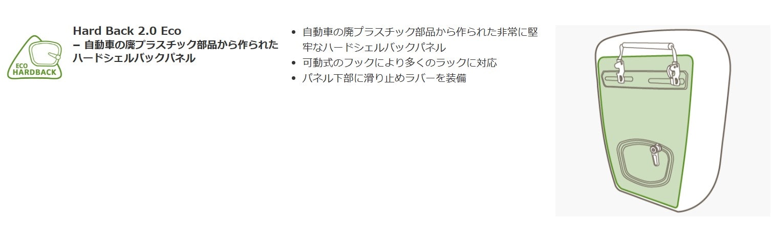 丈夫なバスケットのバックパネルは、廃車のバンパーなどのリサイクルプラスチックから作られています。