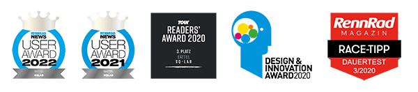 RennRad誌の耐久テストにおける “Race Tipp” (03/20)「この “こぶ “と滑り止め機能付きカバーの組み合わせによるサポートは、非常に効果的である。トップがわずか125グラムというのは非常に軽量だ。」