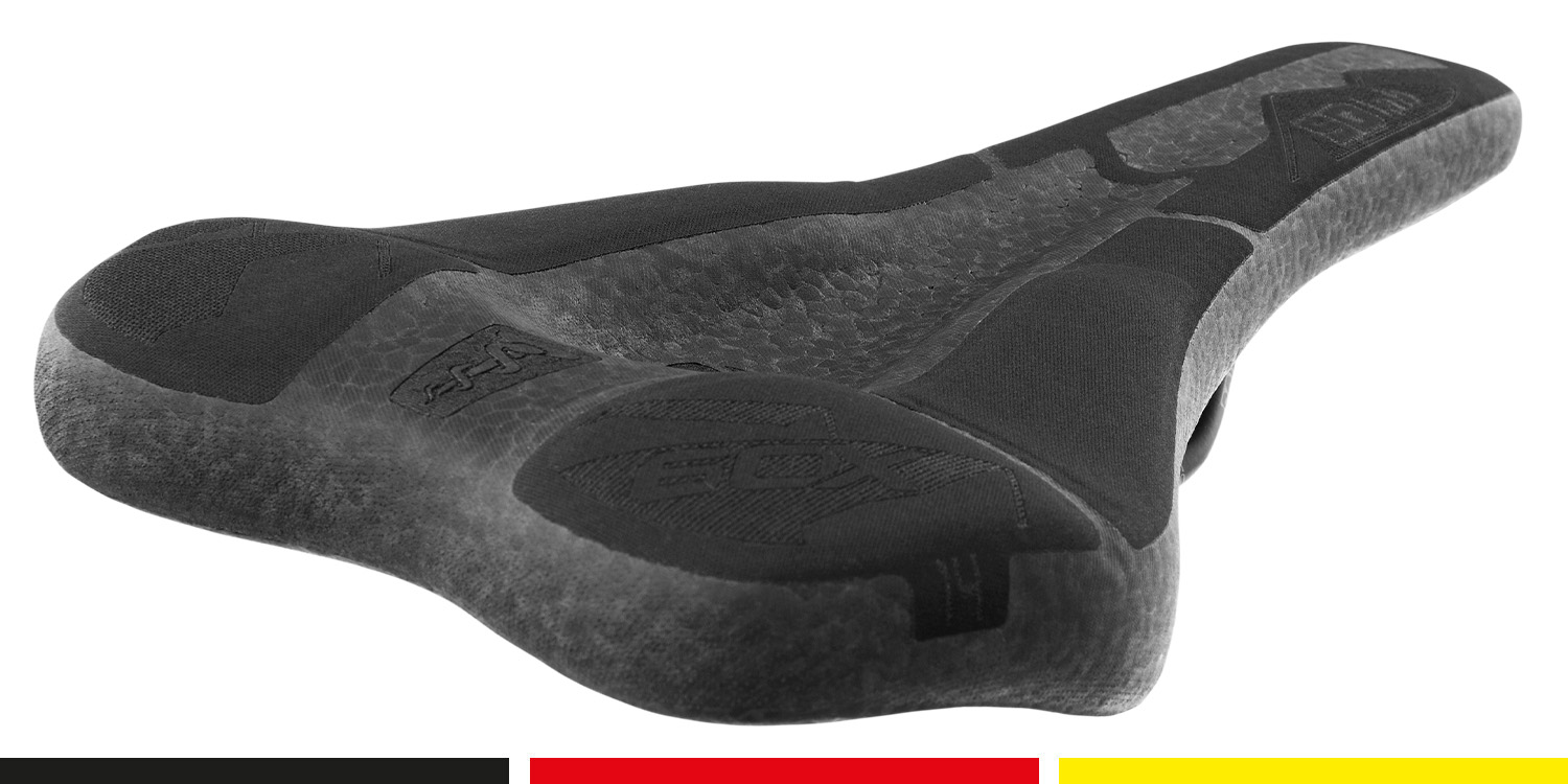 サドルのフォームには、従来のPUフォームではなく、ランニングシューズでおなじみのBASF Infinergy素材が使用されているのが大きな特長となっています。この素材は非常に頑丈で、ほとんど壊れることがなく、とりわけオフロードでの使用において、より速いサイクルで復元することにより、ライダーの快適性を完全に新しいレベルへと引き上げてくれます。