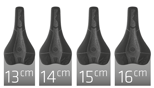 6OX Infinergy ERGOWAVE activeの「Made in Germany」サドルでは、4種類のサドル幅(13 / 14 / 15 / 16 cm)を用意し、男女を問わず最適なフィット感を提供します。