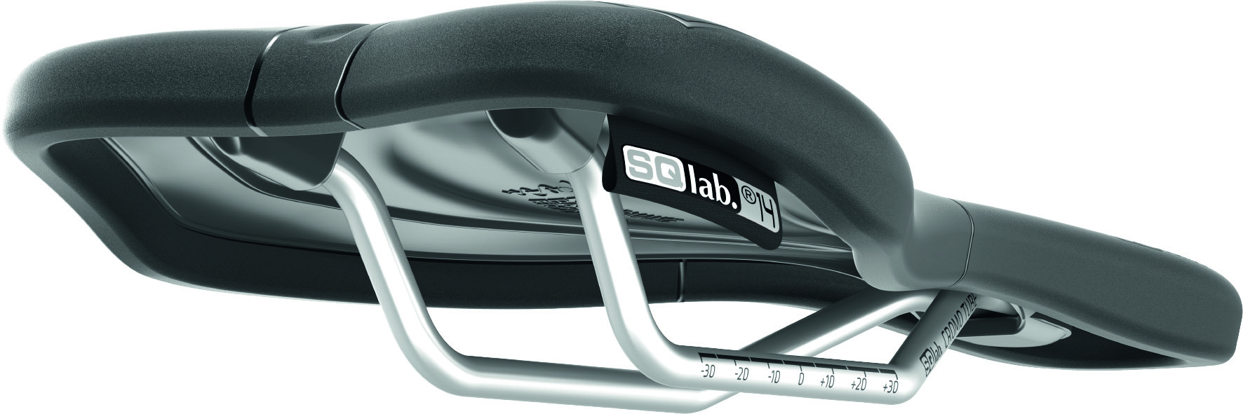 サドル本体はSQlabのアイデンティティである「ステップサドル」形状のデザイン。サドルノーズはロードモデルと比較すると若干広めになっており、より幅広いライドポジションが選べます。