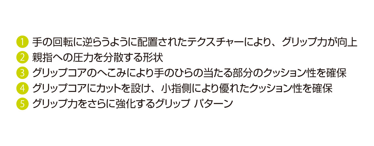 滑りにくい新グリップパターンと柔らかめのラバー素材を採用した「GE1 エヴォ」。