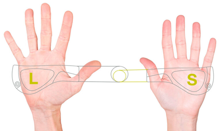 エルゴン グリップのSサイズ/Lサイズは、グリップ自体の長さや幅ではなく手のひらの大きさや指の長さなどに対応するよう、握った時の太さが約10mm変えられています。ぜひ実物を握ってお確かめください。