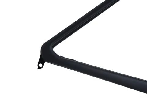 この形状は剛性を確保しつつ、シートチューブと接するフラットセクションで気流を分離し、空気抵抗を大幅に減らす役割を果たします。