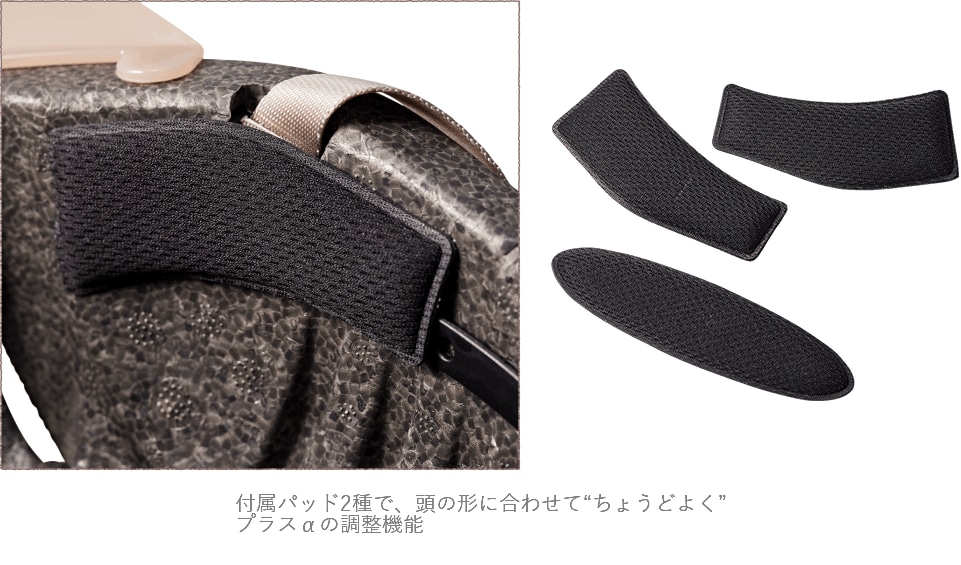 ヘッドバンド(調整範囲54〜59cm)に加え、薄いパッドと厚いパッドの2種類を同梱。