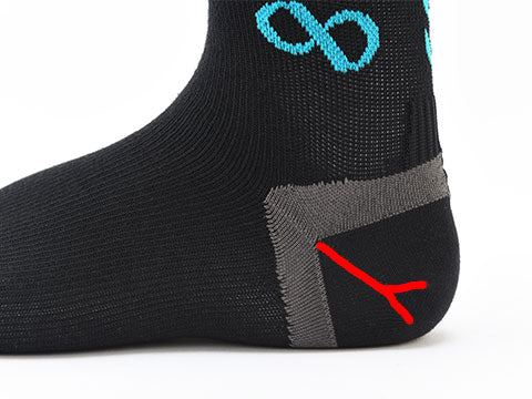 踵の内外をY字形に立体編みし、ズレを防止。しっかりとホールドし、快適なフィット感を保ちます。