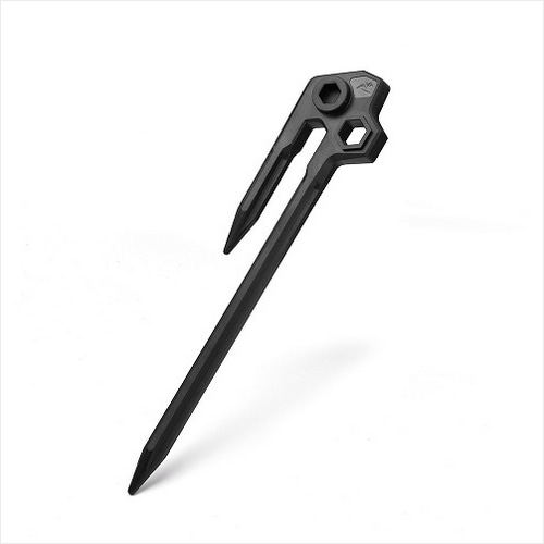 自立式テントや軽量タープの設営時に使用するキャンプ用ペグ。高精度により実現できた8mmと10mmの六角レンチ付き。緊急時には工具として役立つ。