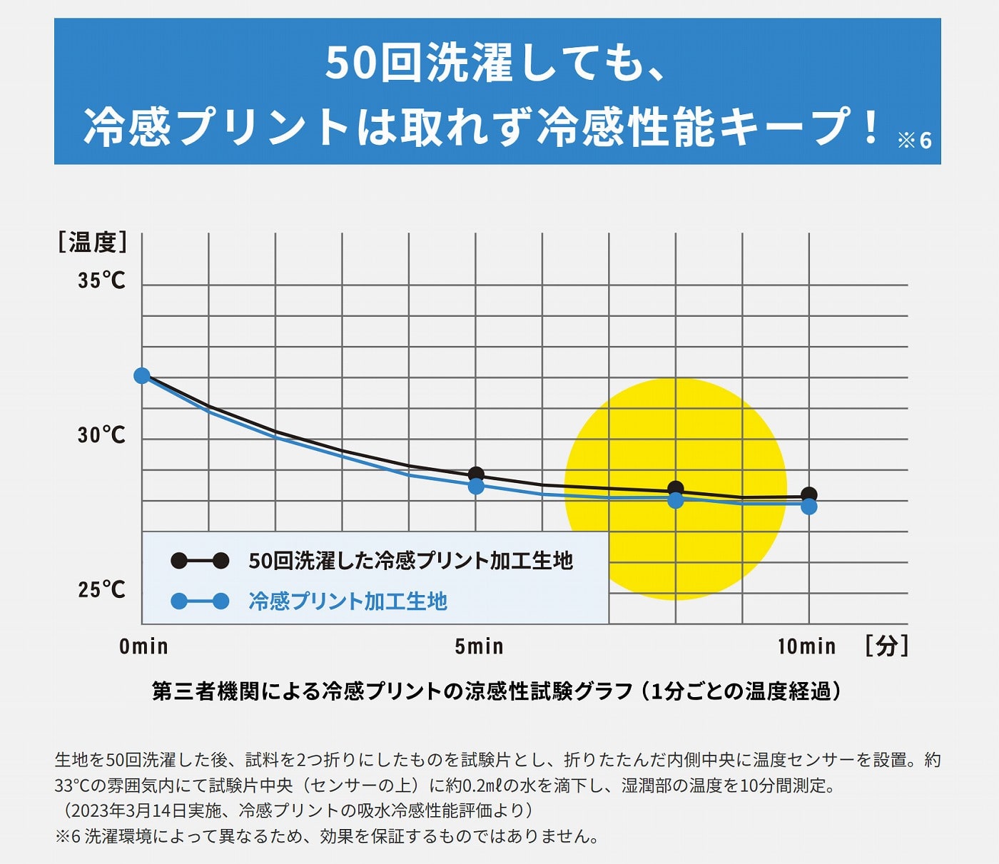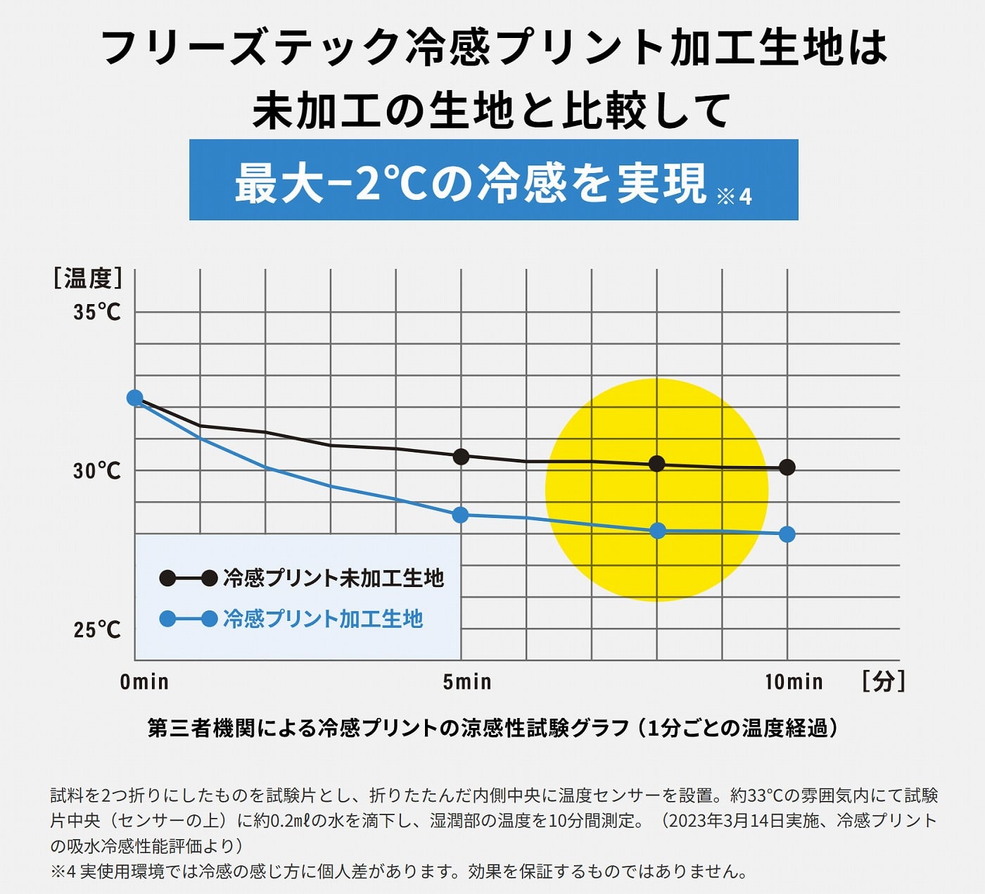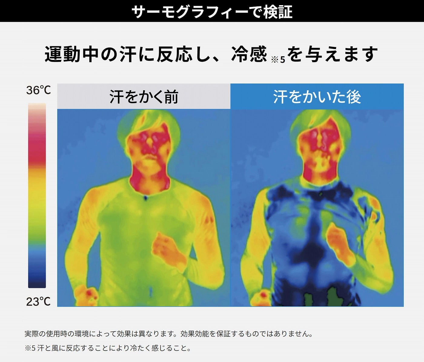 汗に反応する特殊冷感プリントが暑熱環境下におけるスポーツシーンでアスリートのパフォーマンスを向上します。