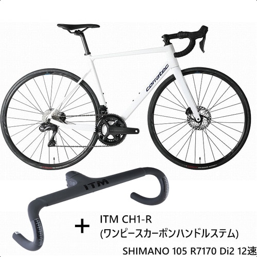 CORRATEC ( コラテック ) ロードバイク R.T.CARBON ( RT カーボン ) 105 Di2 R7170 / WH-RS171 + ITM CH1R ワンピースカーボンハンドルステム ホワイト/ネイビー 50 (身長目安165cm前後)