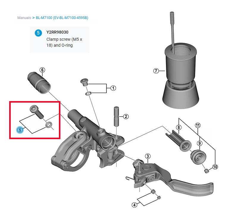 SHIMANO SMALL ( シマノ ) リペアパーツ BL-M8100 / M7100 取り付けボルト & Oリング ボルト呼び寸法: M5X18