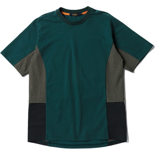 脇のベンチレーション切り替えとフラップ付きポケットデザインが特徴的な半袖Tシャツです。