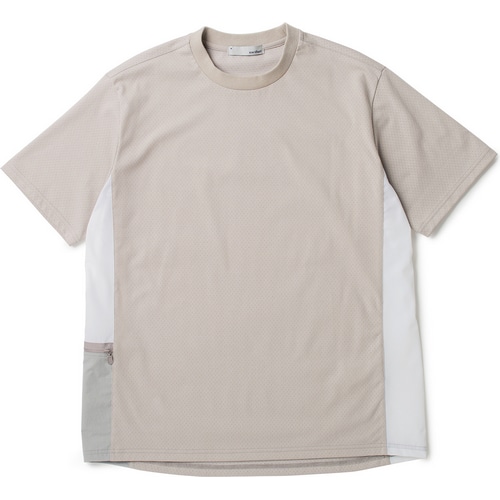 脇のベンチレーション切り替えと片側のみについたファスナーポケットデザインが特徴的な半袖Tシャツです。