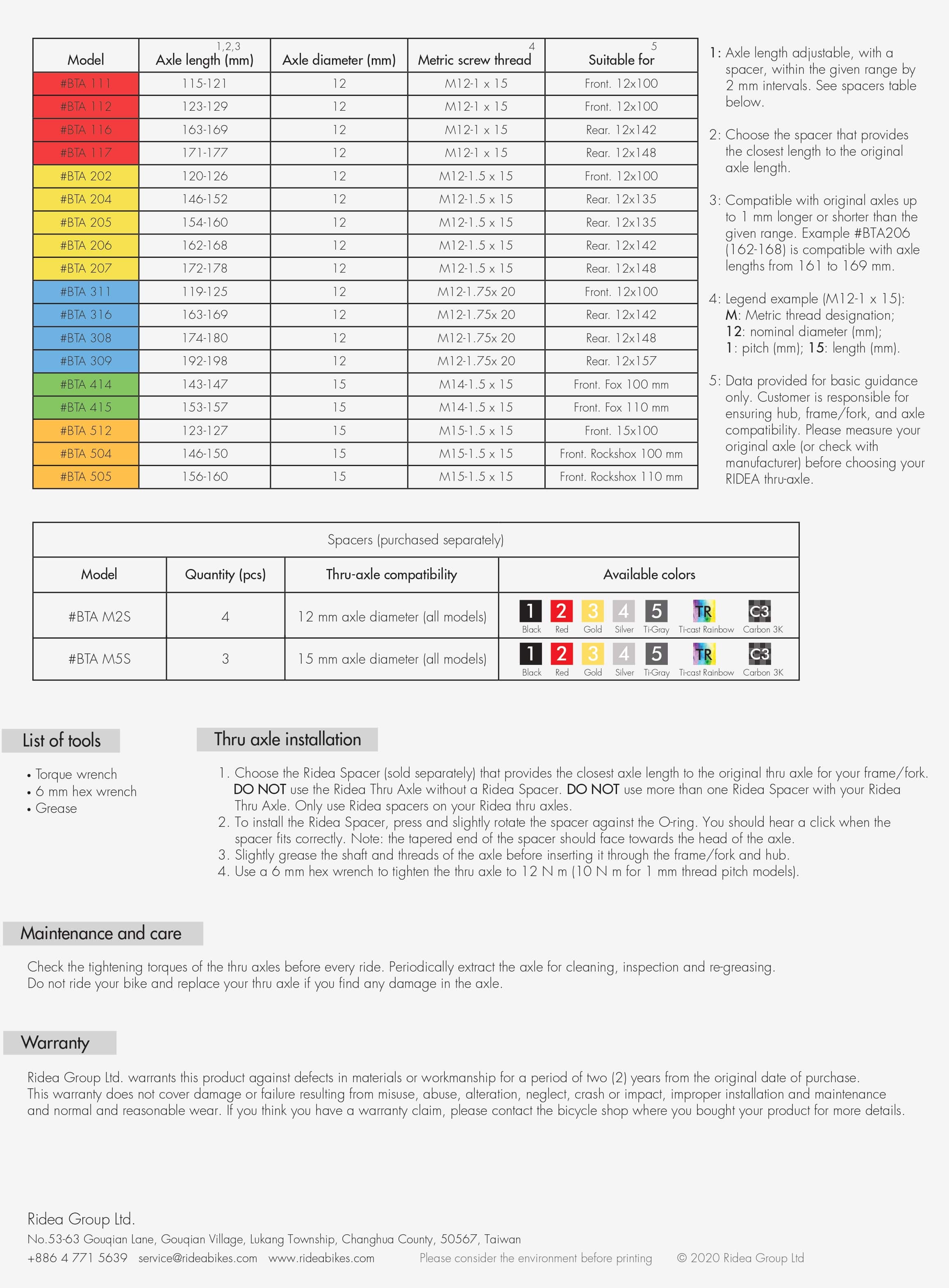 RIDEA THRU AXLE MEASUREMENT GUIDE