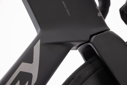 一体化されたヘッドチューブからダウンチューブとフォーククラウンとの相乗効果により、あらゆる角度からの気流に対して優れたエアロダイナミクス効果を発揮。