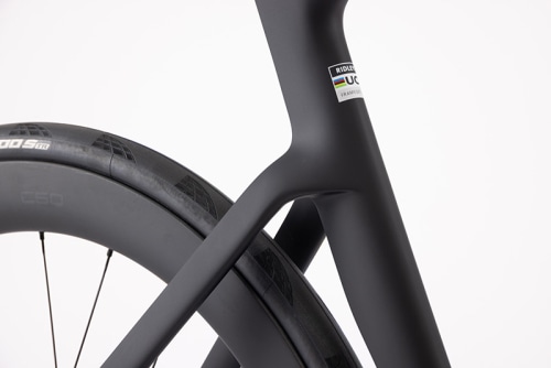 フロントフォークは最新のUCI基準を最大限に生かし前面投影面積が小さい空気を切り裂く最適なエアロ形状を採用することでエアロダイナミクス効果を発揮します。