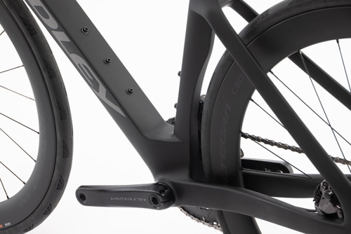 UCI規制で許可される補強三角形ルールを最大限に活用し、後方へと伸びる特徴的なヘッドチューブは前面投影面積を可能な限り小さくするよう設計。