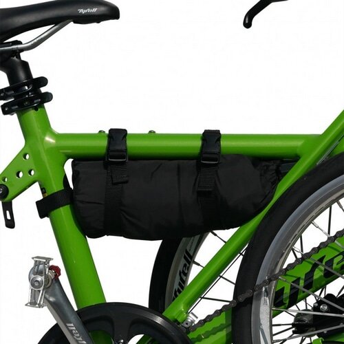 全収納タイプのため、旅客機関を選ばずあらゆる輪行シーンで使用が可能。未使用時は専用のポーチにすっきり収納し、付属のバンドでトップチューブ下やサドル後部など、お好みの場所に取付けできます。