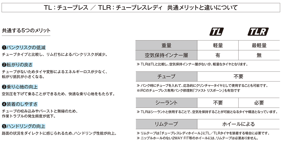 | IRC NO. | カラー | サイズ | ビード | 空気圧 (kPa) |
