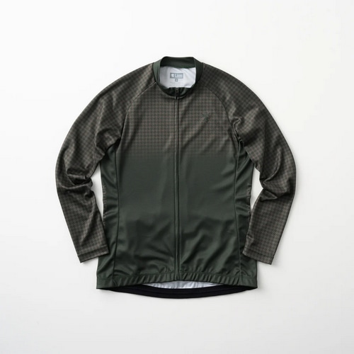 吸汗速乾とUVカット機能付きの適度なフィット感のプリント長袖ジャージ。