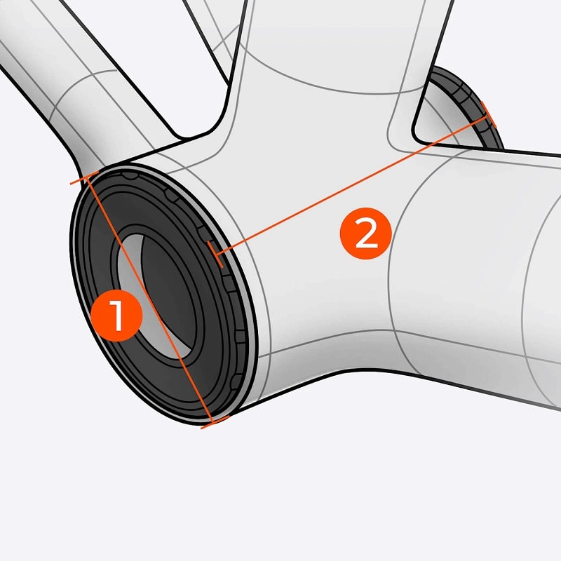 下記画像をご確認いただき、BB 周辺のフレーム寸法が収まっているか事前にご確認ください。