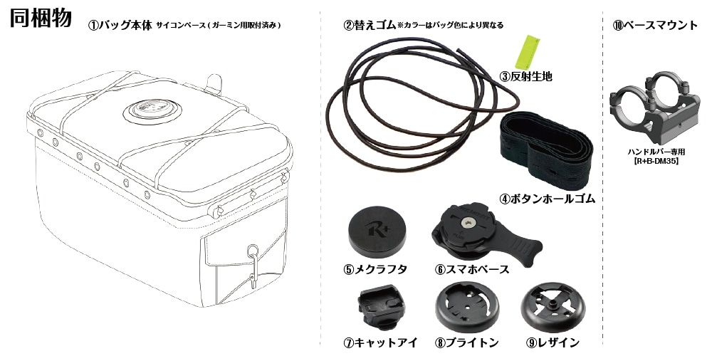 また、バッグを使わない時には拡張キットを使用する事で通常のサイコン・スマホやライト用のマウントとしても使用可能。