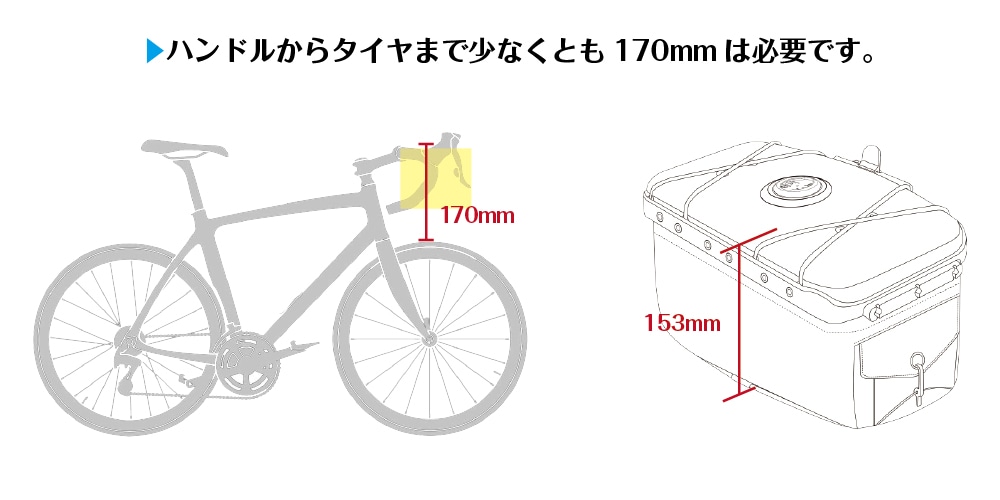 ハンドルからタイヤまで少なくとも170mmは必要です。 ※ワイヤー類など周辺パーツも確認ください |