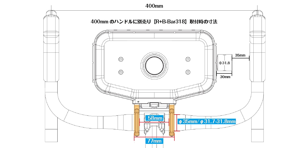 | ハンドルバー専用ベースマウントでの確保する寸法 |