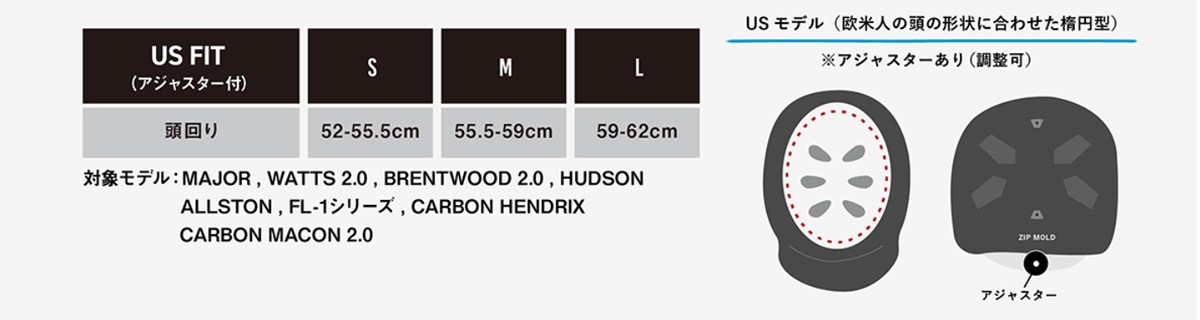 | フィッティング | US FIT:欧米人の頭の形で多い楕円型設計 |