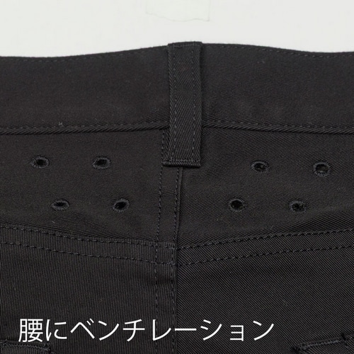 ペダルをこぎ続けると腰の後ろは熱や汗がこもりやすいため、ベンチレーションホールを開けて通気性を持たせました。