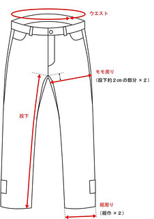 | Size(cm) | ウエスト | 股下 | モモ周り | すそ周り |