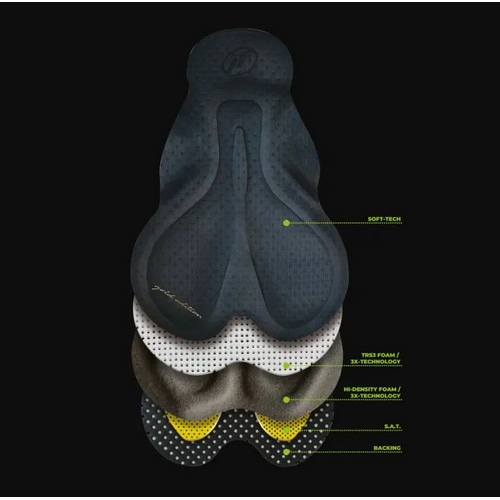 乗車姿勢に合わせたアナトミックシェイピングで、快適な走行を実現します。3XテクノロジーとSAT素材により、衝撃吸収性・透湿性・速乾性・伸縮性が飛躍的に向上。
