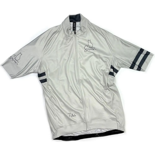 - 猫デザインのワンポイントイラストが可愛くローディーを主張し過ぎないサイクルジャージ