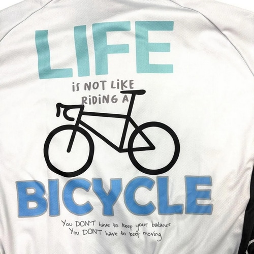 一見Life is Bicycleとみえますが・・・実はこれアインシュタインの自転車をめぐる名言へのアンチテーゼです。曰く 「人生は自転車に乗る・・・のとは違う。バランスを保たなくてもいい。