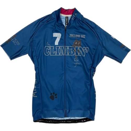 ヒルクライムキャット! 落ちるネコがモチーフのユニークなデザイン。フロントではFollow me「ついてきて」って言って自信満々登っているのに・・・