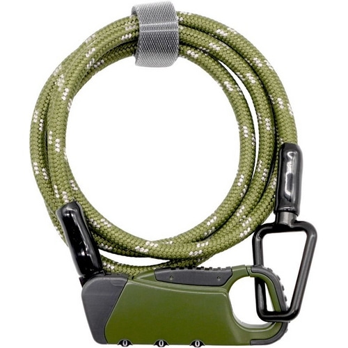 - 外側に防弾チョッキや登山ロープに使用される非常に強靭で摩耗に強いUHMWPE(超高分子量ポリエチレン)繊維を二層構造で採用し内側の2.0mmスチールブレードコアと組み合わせることで優れた耐切断性能を発揮(同サイズのコイルケーブル比・長時間駐輪時はチェーンロック推奨)