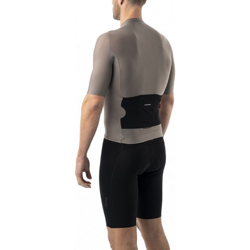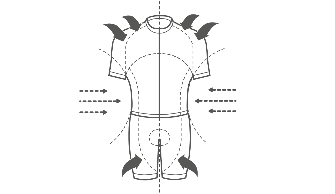 フロントとリアのパフォーマンスファブリックのパネルは、風の抵抗を減らし、ライダーの体に密着します。