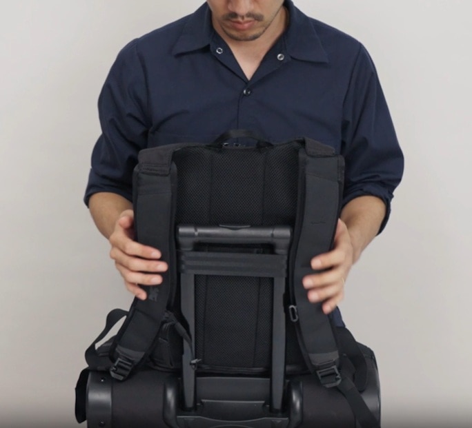 背面にはキャリーケースと併用できるキャリーバールーを搭載。