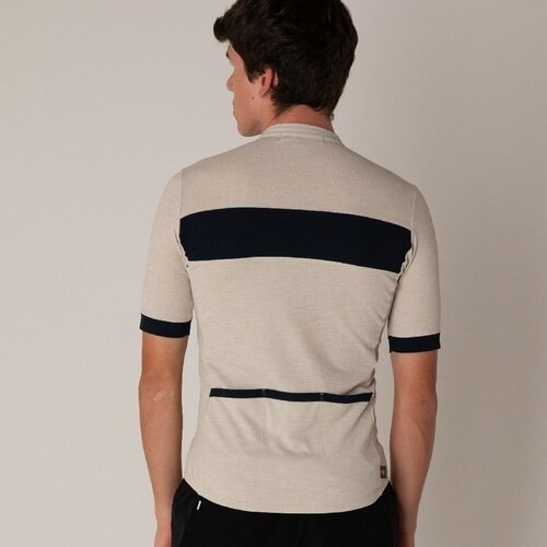 触れた瞬間、ナチュラルな柔らかさと清涼感ある麻調の機能性抜群なコンビジャージです。