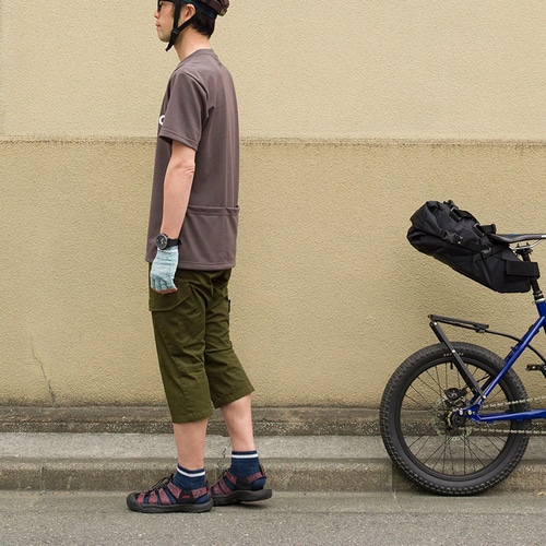 汗をかいてもすぐ乾く。サイクルジャージタイプのバックポケット付きカジュアルTシャツ。