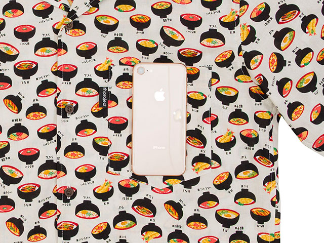 胸ポケットはiPhone8やSEなどが収まるサイズです。