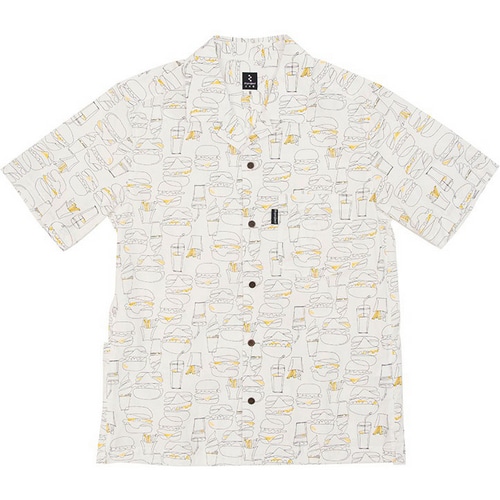 ポップなハンバーガー柄ですがきれい目の生地を使用しているため、大人向けの品の良い開襟シャツに仕上がっています。