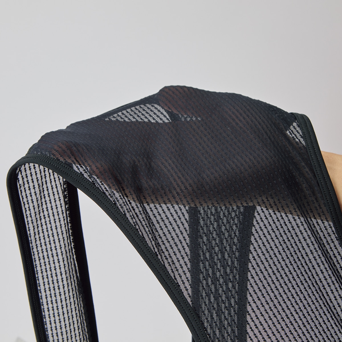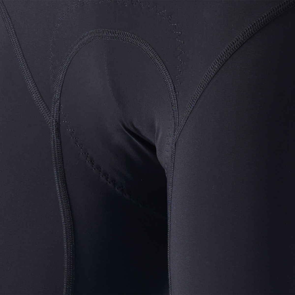 裾は皮膚の一部のようなフィット感と、見た目のシルエットの美しさを引き出すカットオフ仕様。パッドには身体と一体化するより高いフィット感と柔らかなクッション性を両立させた最新モデル「3D-エックス」を使用しています。