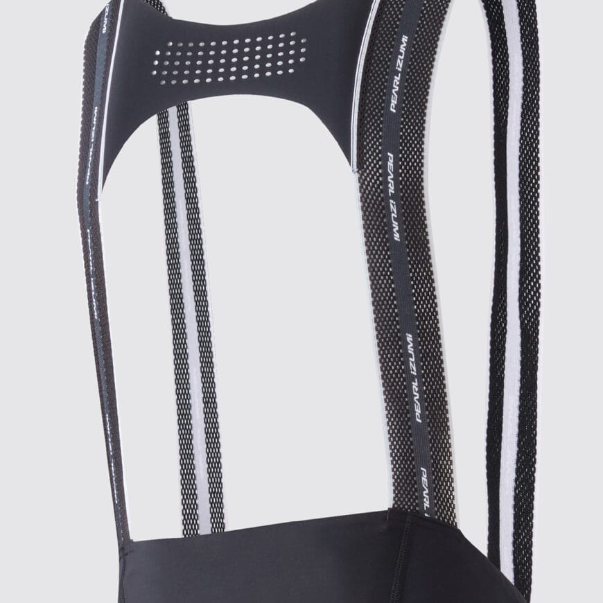 ジャージ身頃素材の通気性を活かす、メッシュに編み分けられたビブバンド